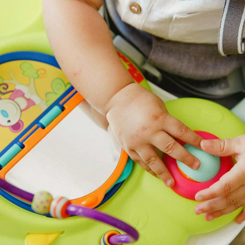 The Bumbo Playtop Safari is designed to engage and entertain, stimulating your child’s imagination and exploration. With its vibrant colours, exciting textures, and engaging activities, it provides hours of educational fun. You can stick the tray to any smooth surface for your baby to solve the bead maze, page though the flipbook and play with the rotating ball and the elephant toy. Safe and durable, it is perfect for indoor or outdoor use. The tabs attached to the suction cups allow for easy release when pulled. BPA, PVC and phthalate free.