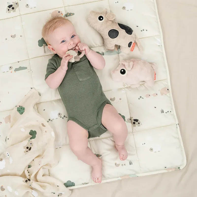 Pigee is a super-soft cuddle toy, perfect as your child’s cuddle companion for every nap, bedtime, or adventure. With one side featuring an open eye and the other a closed eye, Pigee’s playful design encourages curiosity and exploration. The cute powder colour and contrasting eye add gentle visual stimulation, supporting your little one’s development. As a comforting Deer friend, Pigee is always by your child’s side, bringing safety, love, and joy through every stage of the day.