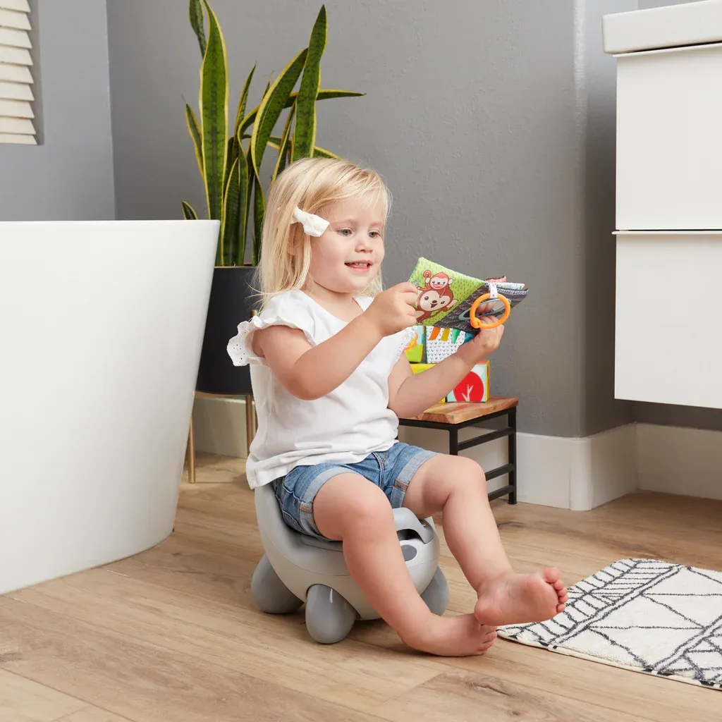 The Infantino Potty Pals Potty Seat offers a friendly and modern design that will make your child's potty training journey simpler and more enjoyable. The contoured seatback provides a comfortable place for your little one to sit, while the splashguard helps keep messes contained. The bowl is removable so you can quickly and easily clean up any accidents. Plus, the lid can cover the waste bowl when not in use. The slip-resistant feet also keep the potty stationary while in use. With a functional and fun design, the Infantino Potty Pal is sure to be a hit with you and your child.