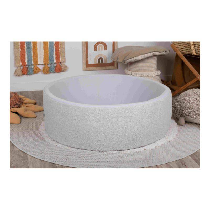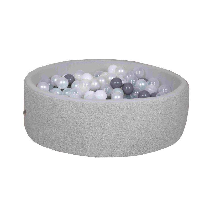 The Delsit Baby Ball Pit is ready to use right out of the box. In a stylish gray hue, complemented by blue, clear, silver, and white pearl balls, this pit combines soft polyurethane foam and premium 100% cotton fabric cover for a safe, cozy play area.