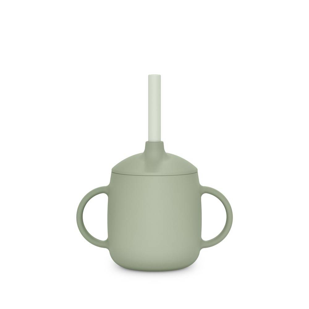 Cup with handles made of soft silicone, allow to drink in 3 positions: