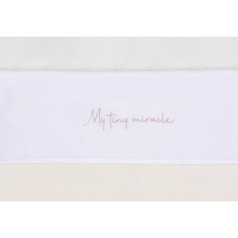 How cute is this little sheet? The sweet text 'my tiny miracle' is on the border of the sheet. With your little one sleeping under it, it will be even more adorable. You can combine this sheet with the Grain Knit blanket. Thanks to a sheet, you can tuck your little one in safely and tightly, and it will protect the blanket from stains, for example if your baby spits.